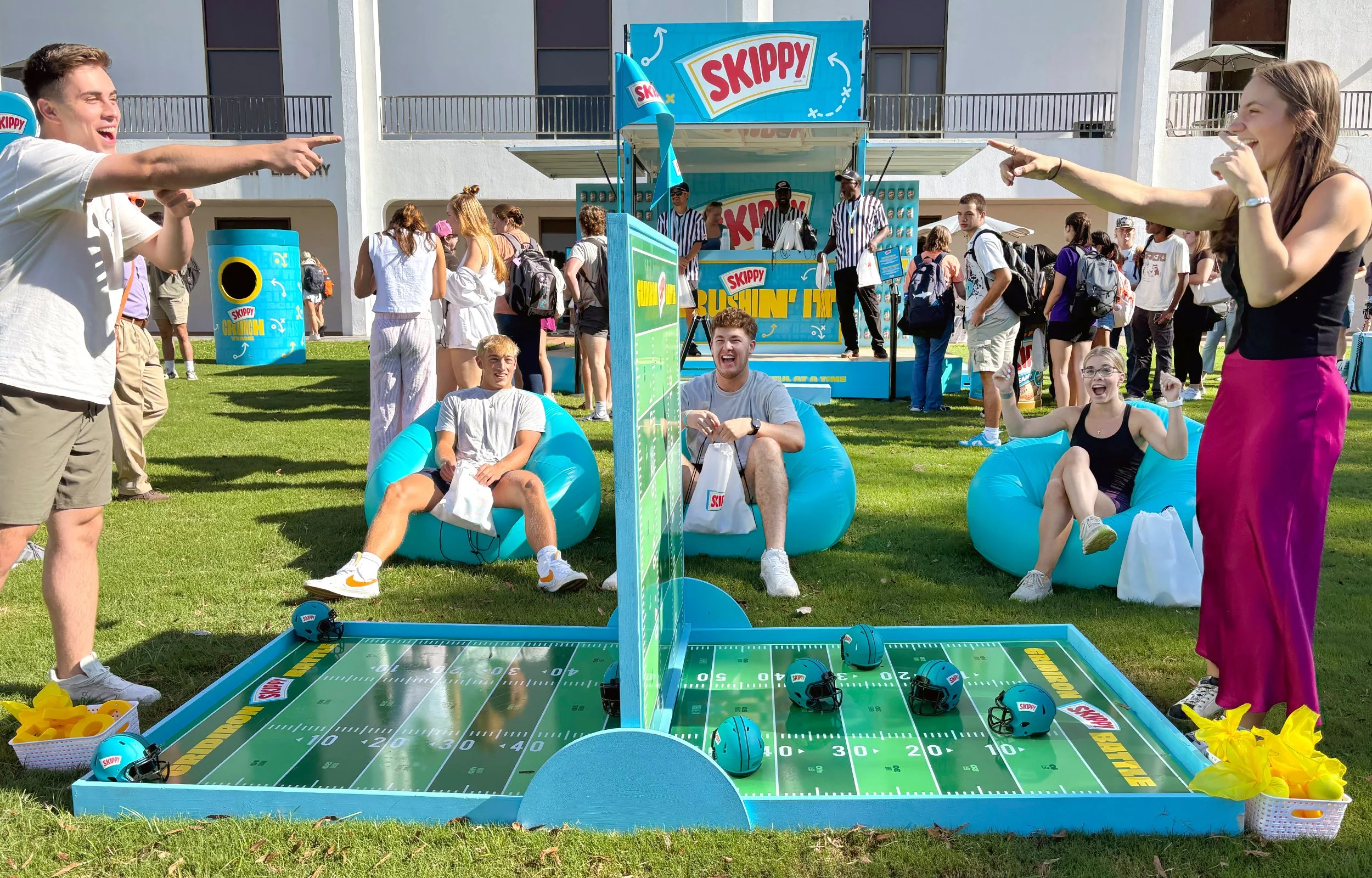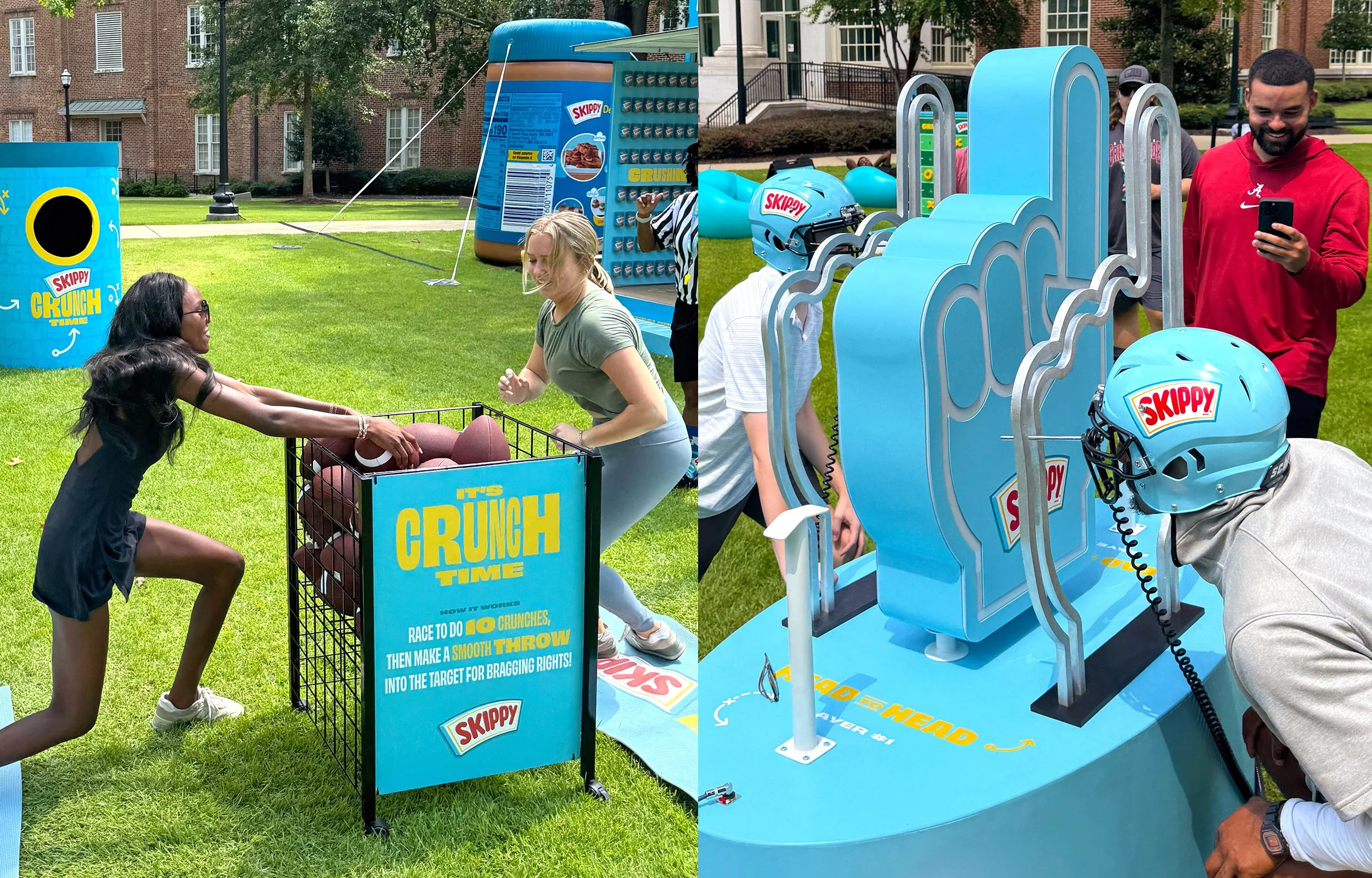 Pre-promoted with a social media blitz and on-campus street teams delivering 5,000 free peanut butter jars to each stop, four Southeastern colleges enjoyed a pop-up tour packed with fun activities for mind and body along with free swag and satisfying peanut butter snacks that kicked off strong school years and successful seasons. In addition to interactive gaming touchpoints that created a “back-to-school hustle” vibe, athlete appearances from college football stars like Sammy Brown and “Jam” Miller stoked students and super-fans alike. Plus, one lucky student’s grind was rewarded by the lead-generating Spread the Success giveaway: A supply of peanut butter for the rest of the winner’s undergrad years. No matter the goal, SKIPPY peanut butter is there to help crush it.
