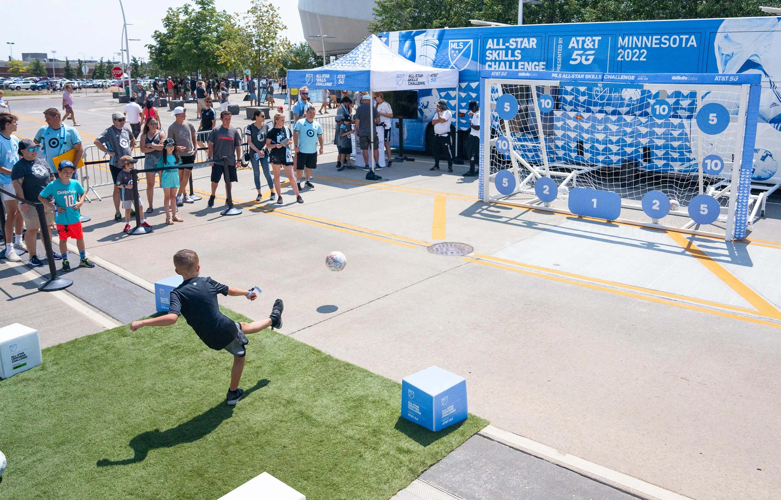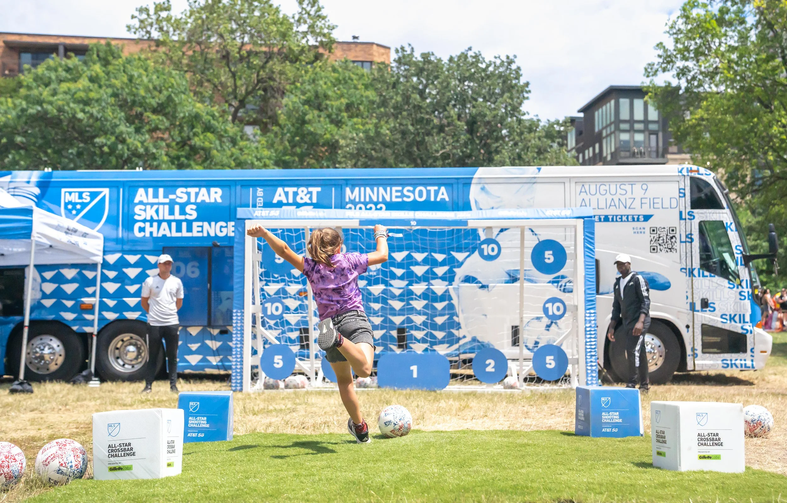 For three consecutive years, a scaled-down version of the same soccer skills competition the pros take on was the vehicle - literally. A customized tour bus traveled to key events and transformed into a fully automated replication of the All Star target shooting contest. With live digital leaderboards determining prizes, athlete appearances and shareable content, the excitement level stayed high from stop to stop. The grand prize? The fan with the tour’s highest score got to kick on-field with the MLS All Stars for a shot at $25,000.